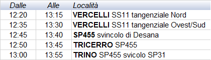 SS 11 “Padana Superiore” da VERCELLI Tangenziale Nord/Ovest/Sud a TRICERRO – TRINO (SP455)
