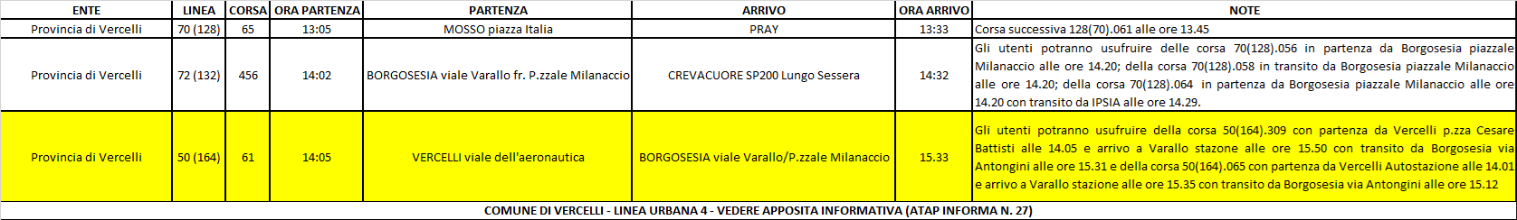 A seguito delle comunicazioni pervenute in azienda nella giornata odierna relative a nuove assenze di personale viaggiante, avendo esaurito le scorte di personale abilitato alla guida, ad esito del lavoro di riorganizzazione del servizio finalizzato alla minimizzazione dei disagi all’utenza, si comunica che, nella giornata odierna (venerdì 06/02/2026), non verranno erogate le seguenti corse ATAP: