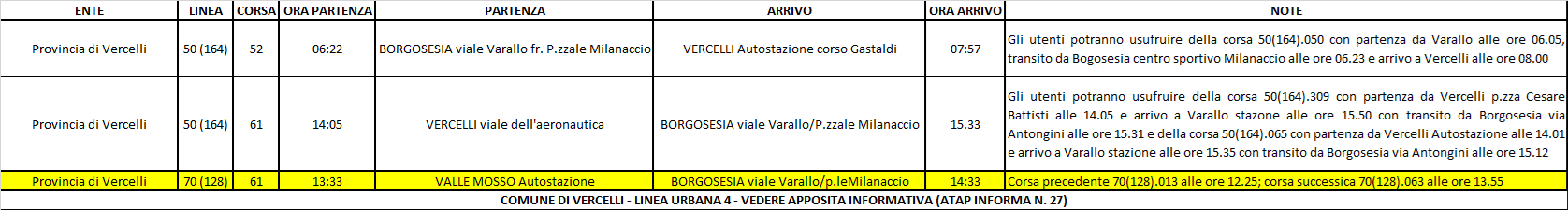 A seguito delle comunicazioni pervenute in azienda nella giornata odierna relative a nuove assenze di personale viaggiante, avendo esaurito le scorte di personale abilitato alla guida, ad esito del lavoro di riorganizzazione del servizio finalizzato alla minimizzazione dei disagi all’utenza, si comunica che, nella giornata odierna (martedì 03/02/2026), non verranno erogate le seguenti corse ATAP: