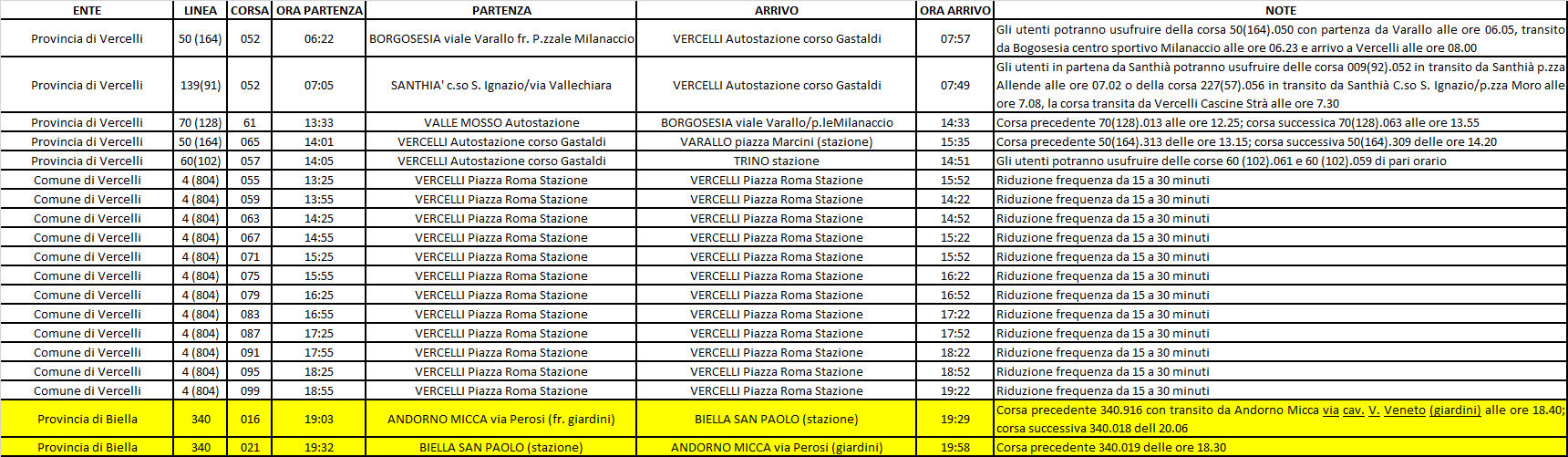 A seguito delle comunicazioni pervenute in azienda nella giornata odierna relative al perdurare dell’indisponibilità di personale viaggiante riferite alla giornata di martedì 24/03/26, avendo esaurito le scorte di personale abilitato alla guida, ad esito del lavoro di riorganizzazione del servizio finalizzato alla minimizzazione dei disagi all’utenza, si comunica che, fatti salvi ulteriori sviluppi, nella giornata di martedì 24/03/26 non verranno erogate le seguenti corse ATAP: