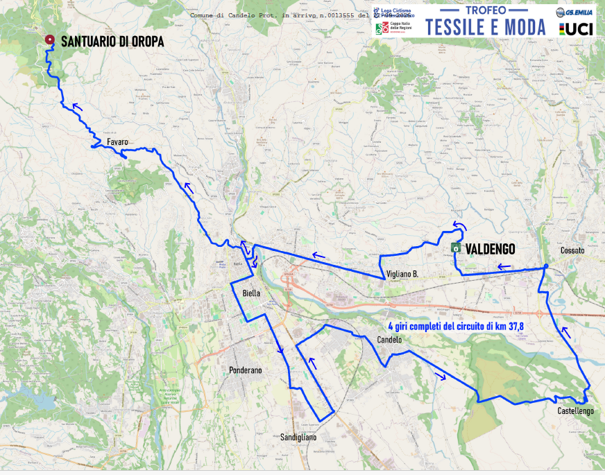 – Professionisti uomini, con 4 giri ad anello sul percorso riportato, dalle ore 10.40 alle ore 14:30 ca. e termine del percorso ad Oropa con arrivo previsto alle ore 15:00 ca.
