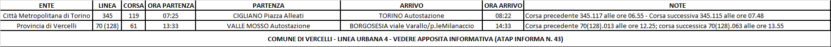 Pubblicato il : 20 February 2026A seguito delle comunicazioni pervenute in azienda nella giornata odierna relative al perdurare dell’indisponibilità di personale viaggiante riferite alla giornata di lunedì 23/02/26, avendo esaurito le scorte di personale abilitato alla guida, ad esito del lavoro di riorganizzazione del servizio finalizzato alla minimizzazione dei disagi all’utenza, si comunica che, fatti salvi ulteriori sviluppi, nella giornata di lunedì 23/02/26 non verranno erogate le seguenti corse ATAP: